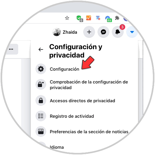 Ahora debes pulsar de nuevo en el menú en el apartado de "Configuración"