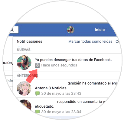 Lo siguiente que debemos hacer es esperar a que se cree el archivo con todos nuestros datos. Una vez finalice el proceso, Facebook nos mandará una notificación.