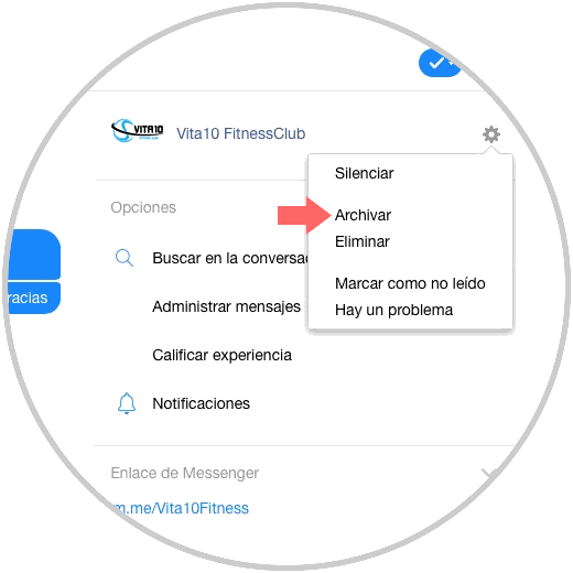 Ahora la conversación habrá quedado archivada. Si quieres recuperarla, tienes que seleccionar en la parte superior de las conversaciones la rueda dentada.
