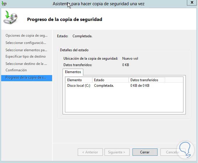 Se desplegará la siguiente ventana donde encontraremos información relacionada con el tema del backup.