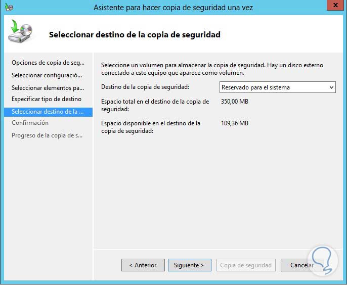Damos clic en Siguiente y elegiremos el destino para guardar nuestra copia de seguridad.