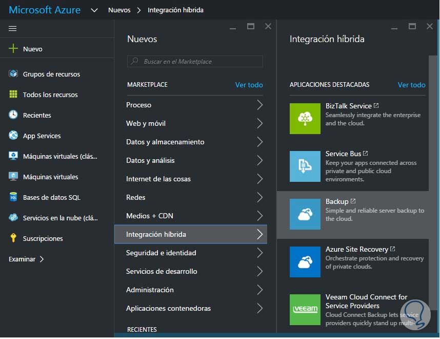 - Ubicar la opción Backup dentro del grupo Integración Híbrida.