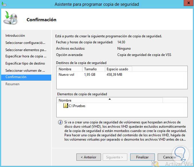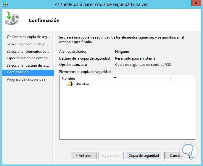 Damos clic en Siguiente para abrir la ventana de confirmación del proceso a realizar.