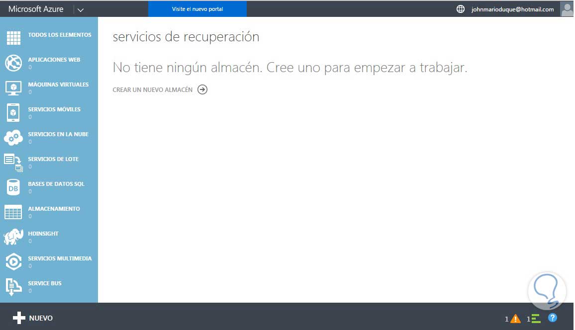 Para acceder a esta plataforma debemos tener una cuenta creada (Y que Azure es pago) y una vez en la consola de Azure procedemos a realizar el siguiente proceso: