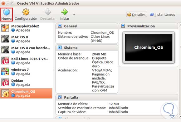 Ahora abrimos VirtualBox e iniciamos nuestra máquina.