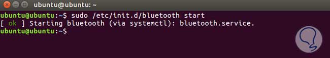 Iniciamos el Bluetooth, ejecutamos la instrucción de abajo: