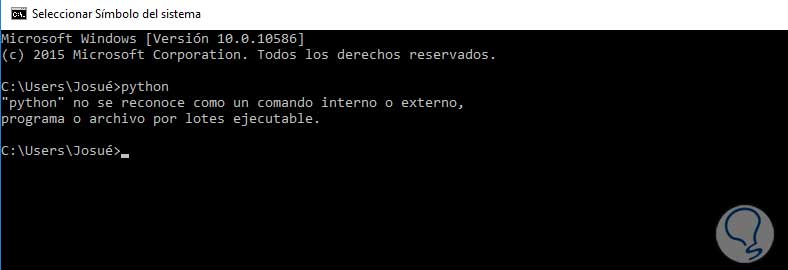 Abrimos la cmd y escribimos python, ya te debe reconocer windows el programa, como puedes ver en la siguiente imagen: