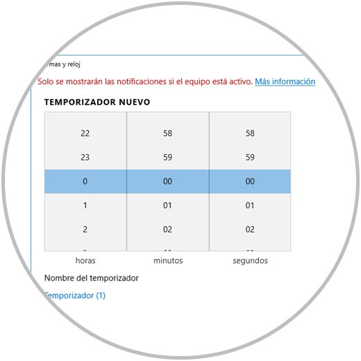 Lo siguiente que debes hacer es seleccionar el tiempo que quieres que tenga este temporizador.