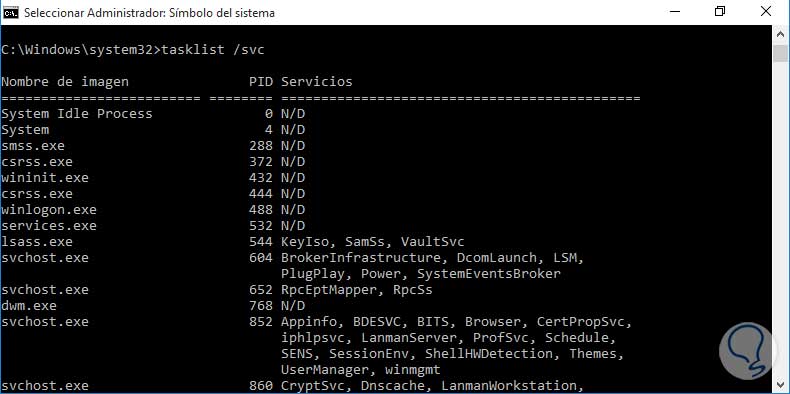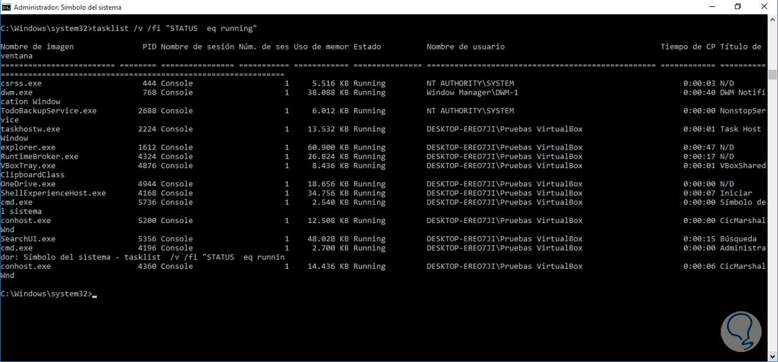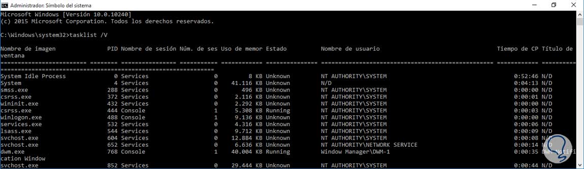 tasklistVeremos que se despliega la siguiente lista donde tenemos los siguientes detalles: