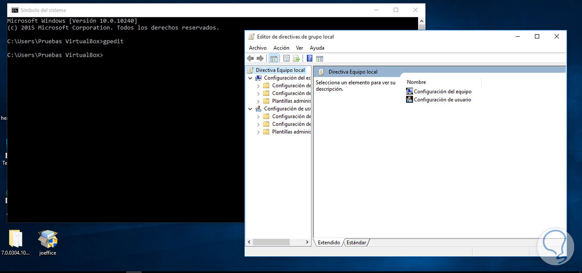 Podemos acceder al editor de GPOs desde el símbolo del sistema, para ello podemos usar dos formas: