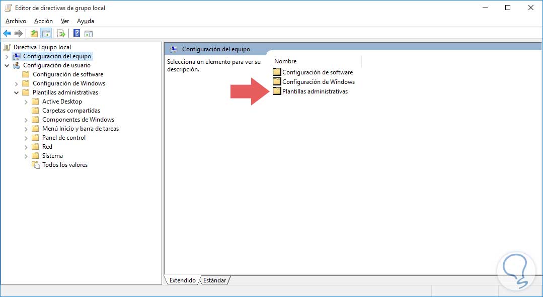 Una vez ingresemos al editor usando cualquiera de los métodos antes mencionados los encontraremos en su interior. Como vemos en la ventana del editor de GPOs contamos con dos opciones: