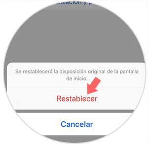 Nos aparecerá la siguiente opción y la damos a “Restablecer”. Con esta opción restableceremos en la pantalla de inicio, todos los iconos en sus posiciones de fábrica.