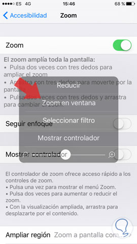 Otra opción disponible es “Cambiar tamaño de lente”, si lo pulsamos nos aparecerá este otro mensaje. Pinchando en “zoom ventana” solo se agrandará el texto que esté dentro de la ventana.