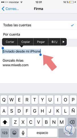5. Ya solo queda eliminar o cambiar el texto de tu firma.