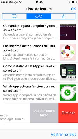Recuerda que para que esto funcione tiene que ser siempre desde el navegador de Safari desde donde accedamos a las webs que queremos guardar en nuestra lista de lectura.
