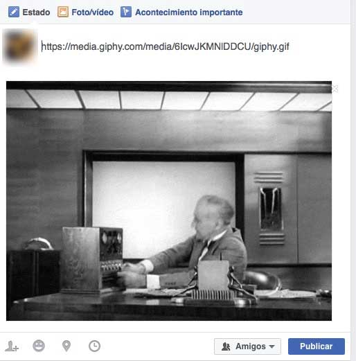En cuestión de segundos nuestro Gif aparecerá de manera automática debajo de la URL. De este modo nuestros amigos ya podrán verlo en nuestro tablón en cuanto seleccionemos publicar.