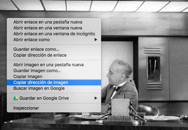 En Google Chrome seleccionamos la opción de 'Copiar URL de la imagen '. Si utilizas Firefox, 'Copiar ubicación de imagen'. En Opera 'Copiar Dirección de imagen'. Si utilizas otros navegadores quizás encuentres opciones algo diferentes pero siempre buscando que nos permitan copiar la URL que nos lleva directamente al Gif.