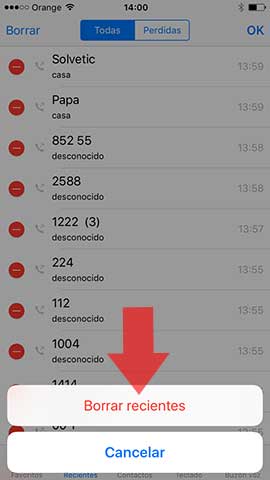 También puedes borrar todo el historial de llamadas a la vez. Simplemente haz clic en “Borrar” en la esquina superior izquierda y después pulas “Borrar recientes”