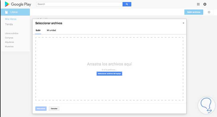 Otra de las opciones que tenemos, es subir este archivo a la web de Google Libros para tenerlo almacenado on-line y tener acceso a él siempre que nos interese. Para ello debemos acceder a la web y desde la sección de “Mis colección” tenemos que seleccionar "Mas" - “Subir archivos” para que este quede almacenado. Una vez cargado, podremos tener acceso a él siempre que estemos conectados a la red.