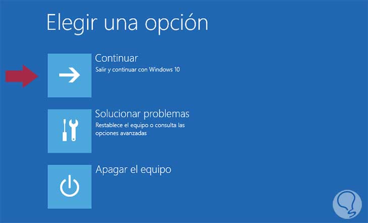 Por último damos a Continuar para iniciar Windows 10, si has insertado los comandos adecuados entonces tu sistema operativo te volverá a arrancar.