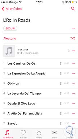 Por ultimo podemos dirigirnos en nuestro dispositivo al apartado de “Música” y ver allí reflejadas las canciones que contiene el CD para poder escucharlas.