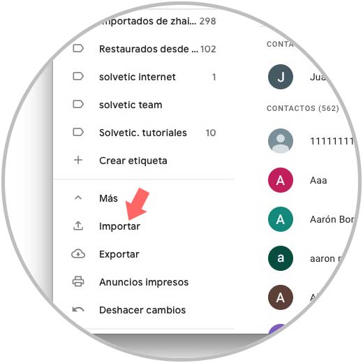 Ahora lo que debemos hacer es entrar en nuestra cuenta de Gmail en el apartado de los contactos. Una vez aquí, debes situarte en el lateral izquierdo y seleccionar la opción que pone “Importar”