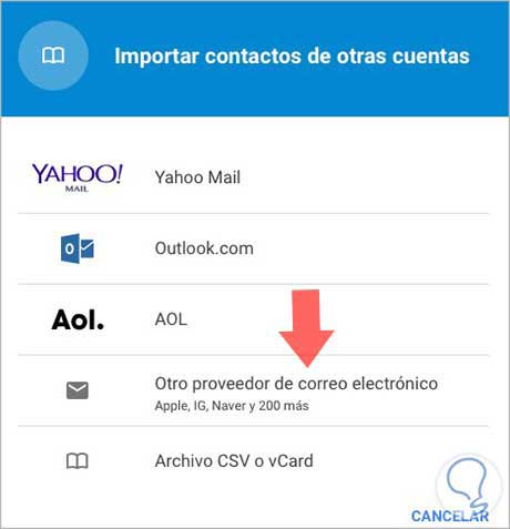 Lo siguiente que se abrirá será una ventana en la que debemos seleccionar desde donde queremos hacer esta importación. Tenemos que seleccionar en este caso “Otro proveedor”.