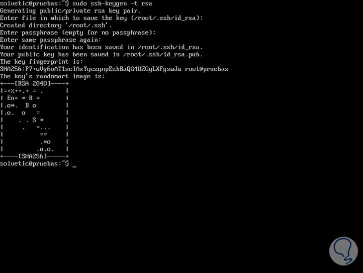 Debemos pulsar Enter en la opción Enter passphrase para que la llave sea creada sin contraseña. A continuación vamos a transferir esta llave a la máquina para que ésta reconozca nuestros datos. Usaremos el siguiente comando: