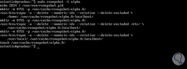 Vamos a probar la configuración de nuestro Rsnapshot para ello usaremos el comando: