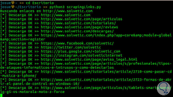 La última parte del código ya fuera de las funciones se encargará de ejecutar el código. En la siguiente imagen puedes ver una captura del código en ejecución, rastreando a solvetic.