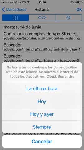 - Siempre (Eliminar todas las páginas webs al completo que se hayan visitado en ese dispositivo)