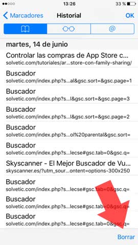 Allí te aparecerá todo tu historial, pinchas en “borrar”, que aparece en la parte inferior izquierda.