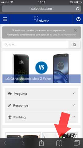 Para borrar el historial de Chrome en tu iPhone o iPad, vete al navegador y pinchas en el libro que aparece en la parte inferior.
