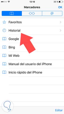 Nos aparecerán las siguientes opciones, pinchamos en “Historial”