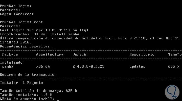rebootUna vez reiniciado el sistema procedemos a instalar los paquetes necesarios para el correcto funcionamiento de Samba, para ello ejecutaremos el siguiente comando: