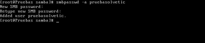 Smbpasswd -a Nombre_UsuarioEn nuestro ejemplo smbpasswd -a pruebasolvetic