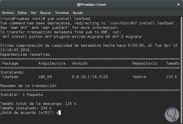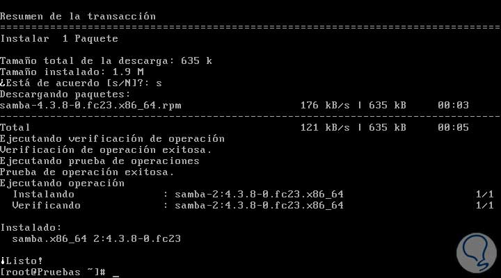 yum install cups-libs samba samba-common samba-clientSe procederá a la respectiva actualización de los paquetes.