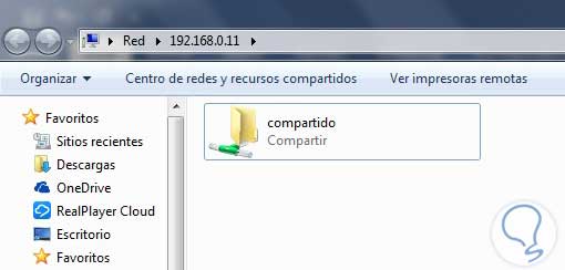 Presionamos Aceptar y veremos que se abre la ventana con nuestra carpeta compartida