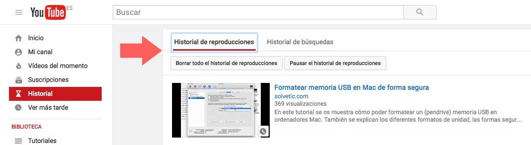 Dentro de Historial, tenemos una sección llamada “Historial de reproducciones”. En este apartado, vamos a poder borrar todo el historial que ha quedado registrado en la web acerca de los videos que hemos visto, así como otro apartado en el que poder parar el historial de estas reproducciones.