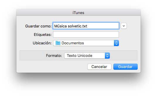 A continuación ponle nombre a la exportación y selecciona "Guardar". Se va a crear en este momento un archivo txt. con tu Playlist.