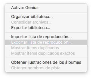 Selecciona la lista de reproducción que desea exportar en la sección de tu música. Una vez seleccionada, accede en el menú superior para acceder: