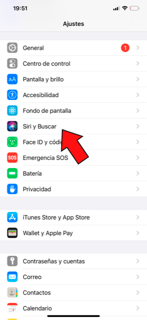 Entramos en "Ajustes" y posteriormente en la opción "Siri y Buscar".