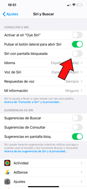 Podemos activar o desactivar Siri de uso en bloqueo, siguiendo los siguientes pasos.
