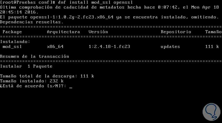 sudo dnf install httpdComenzará el proceso de descarga e instalación de Apache httpd: