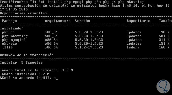 dnf install php-mysql php-pdo php-gd php-mbstringUna vez ejecutemos este comando veremos que comienza la instalación de los módulos: