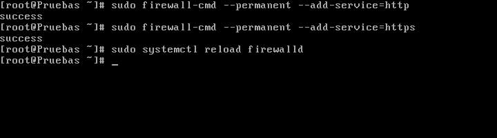 El siguiente paso es habilitar el acceso sobre HTTP o HTTPS, para ello debemos habilitar dicha tarea en el firewall usando los comandos: