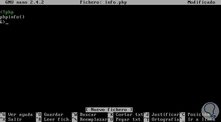 nano info.phpNos sirve para poder crear y editar dicho archivo, ingresaremos lo siguiente:
