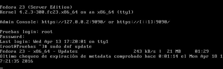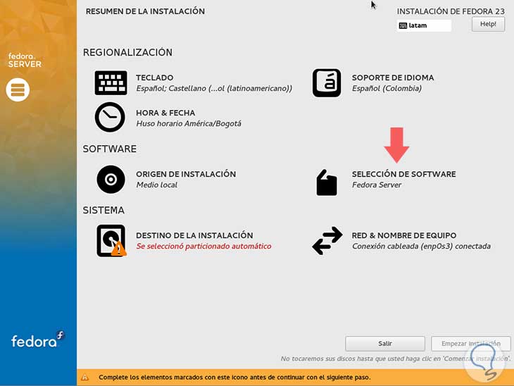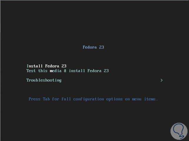 En nuestro ejemplo seleccionamos la primera opción Install Fedora 23: