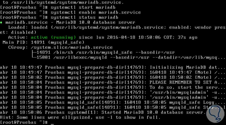 Systemctl enable mariadb Systemctl start mariadb.service Systemctl status mariadb