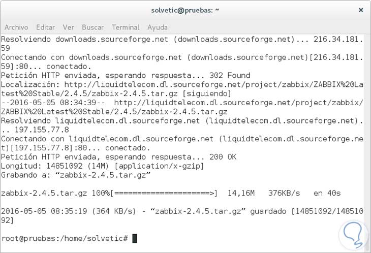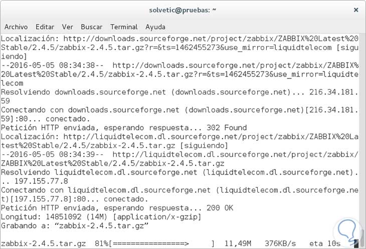 A continuación vamos a descargar, compilar e instalar Zabbix, para ello ejecutaremos el siguiente comando: